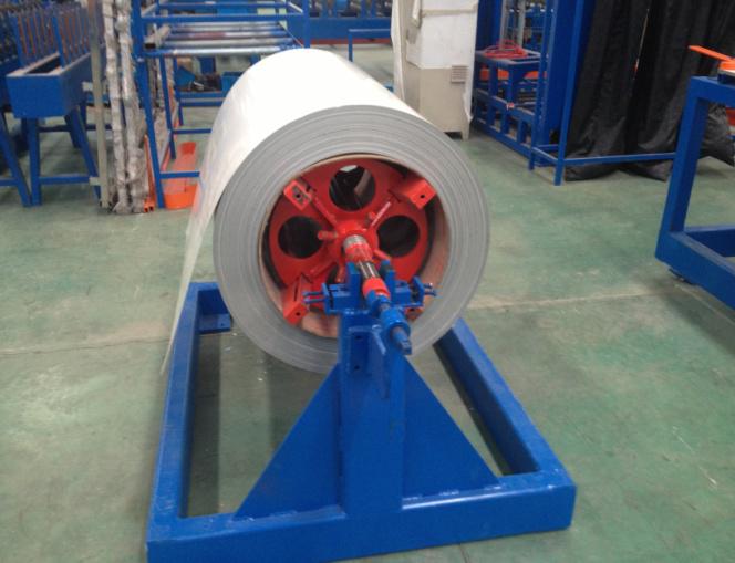 主要由瓦楞板壓型機(jī)和彩鋼復(fù)合機(jī)組成,可以一次性制做墻面彩鋼夾芯板或屋面彩鋼夾芯板,并且瓦楞板壓型機(jī)和復(fù)合機(jī)可以獨(dú)立生產(chǎn)。整條流水線壓型部分由彩鋼板開卷機(jī)、冷彎成型主機(jī)、切斷裝置組成,復(fù)合機(jī)部分由彩鋼板開卷,EPS板或巖棉板輸送,墻面淺波峰壓制,混合涂膠、加溫加壓、復(fù)合、平板卷邊、企口板翻邊、開槽、整邊、氣動(dòng)夾緊、自動(dòng)覆膜、自動(dòng)切割、成品拖架組成;